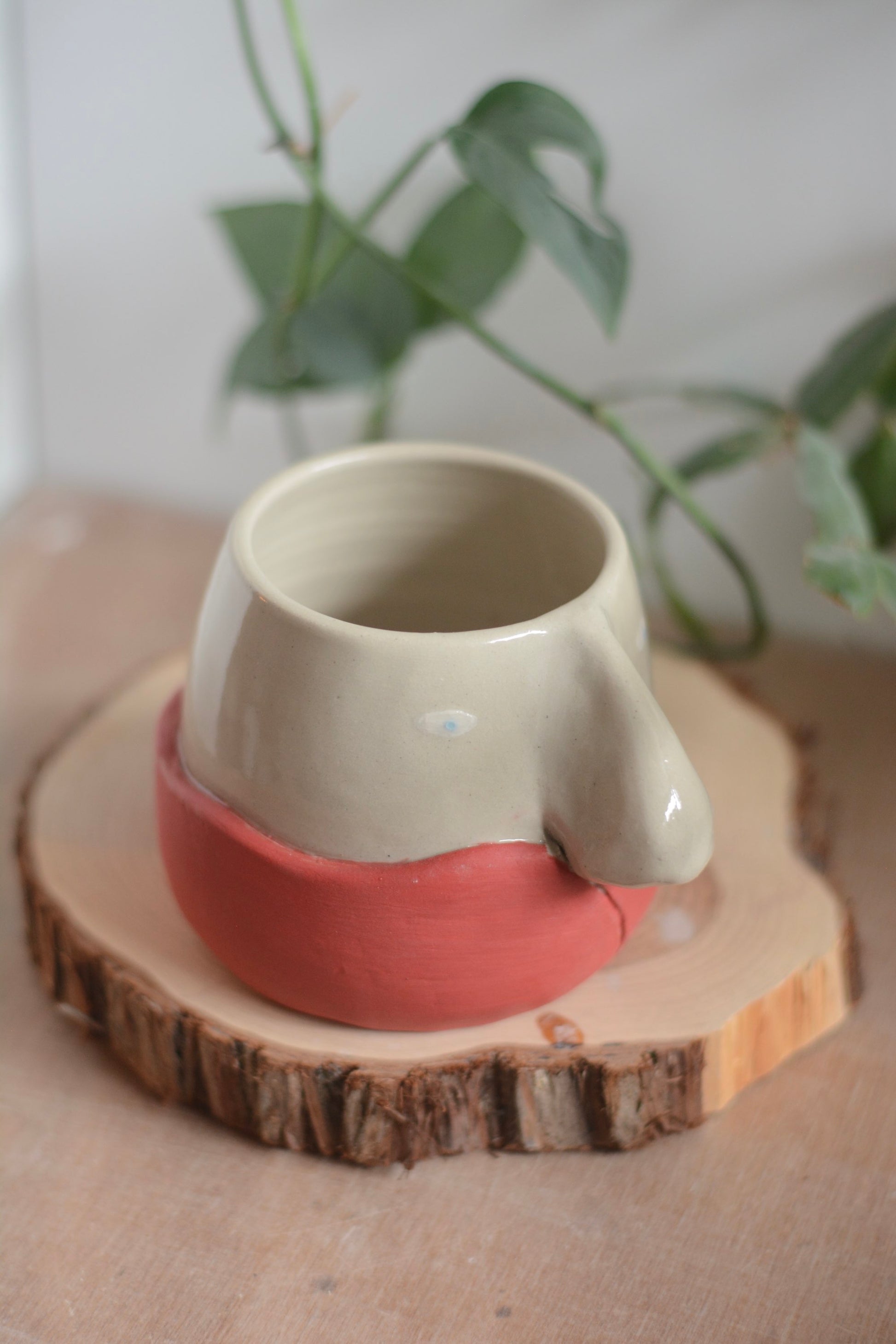 Pièce crée pendant le challenge "claytober". Pièce unique en grès blanc façonnée et décorée à la main puis émaillée en transparent.