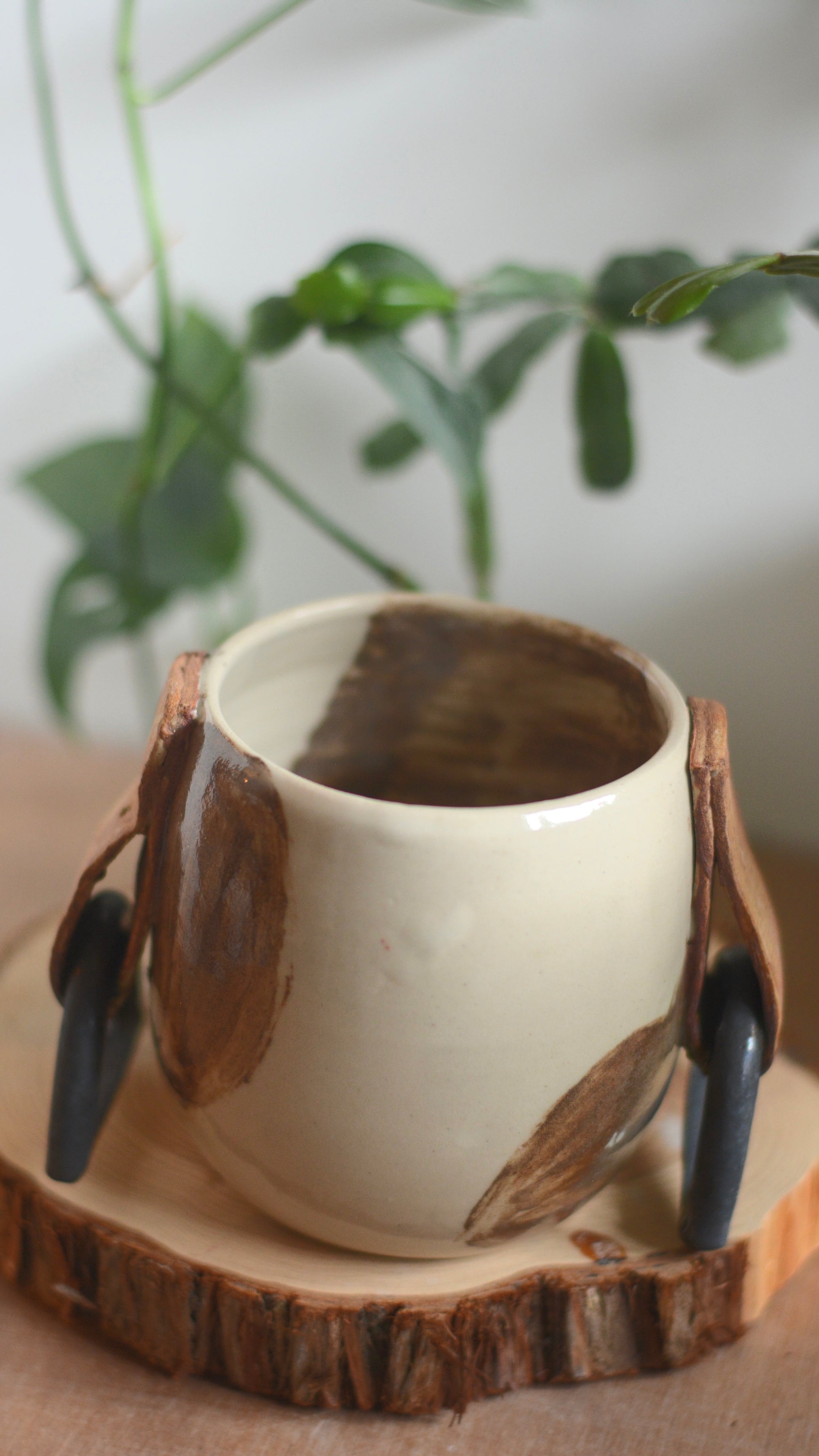 Pièce crée pendant le challenge "claytober". Pièce unique en grès blanc façonnée et décorée à la main puis émaillée en transparent.