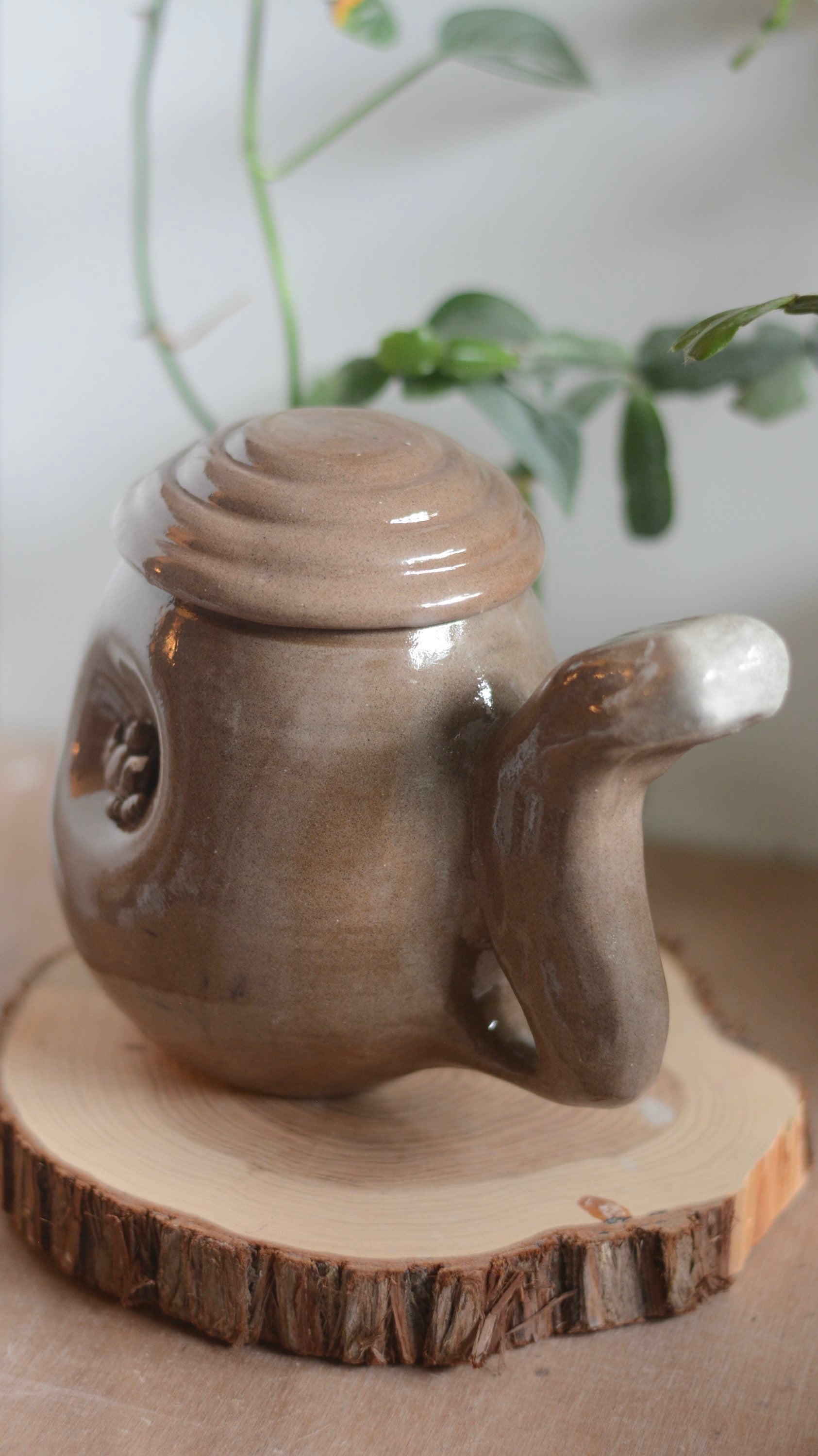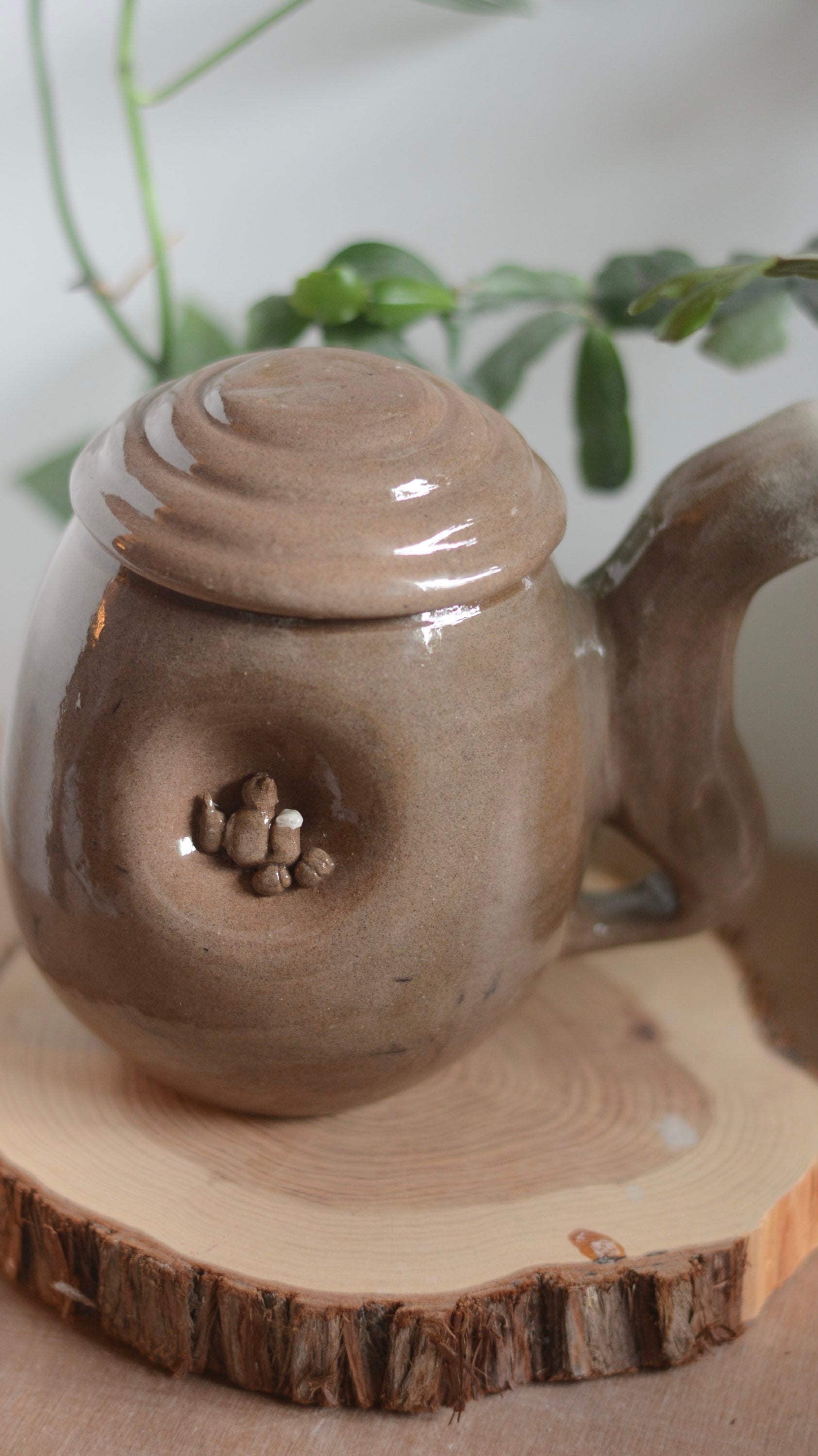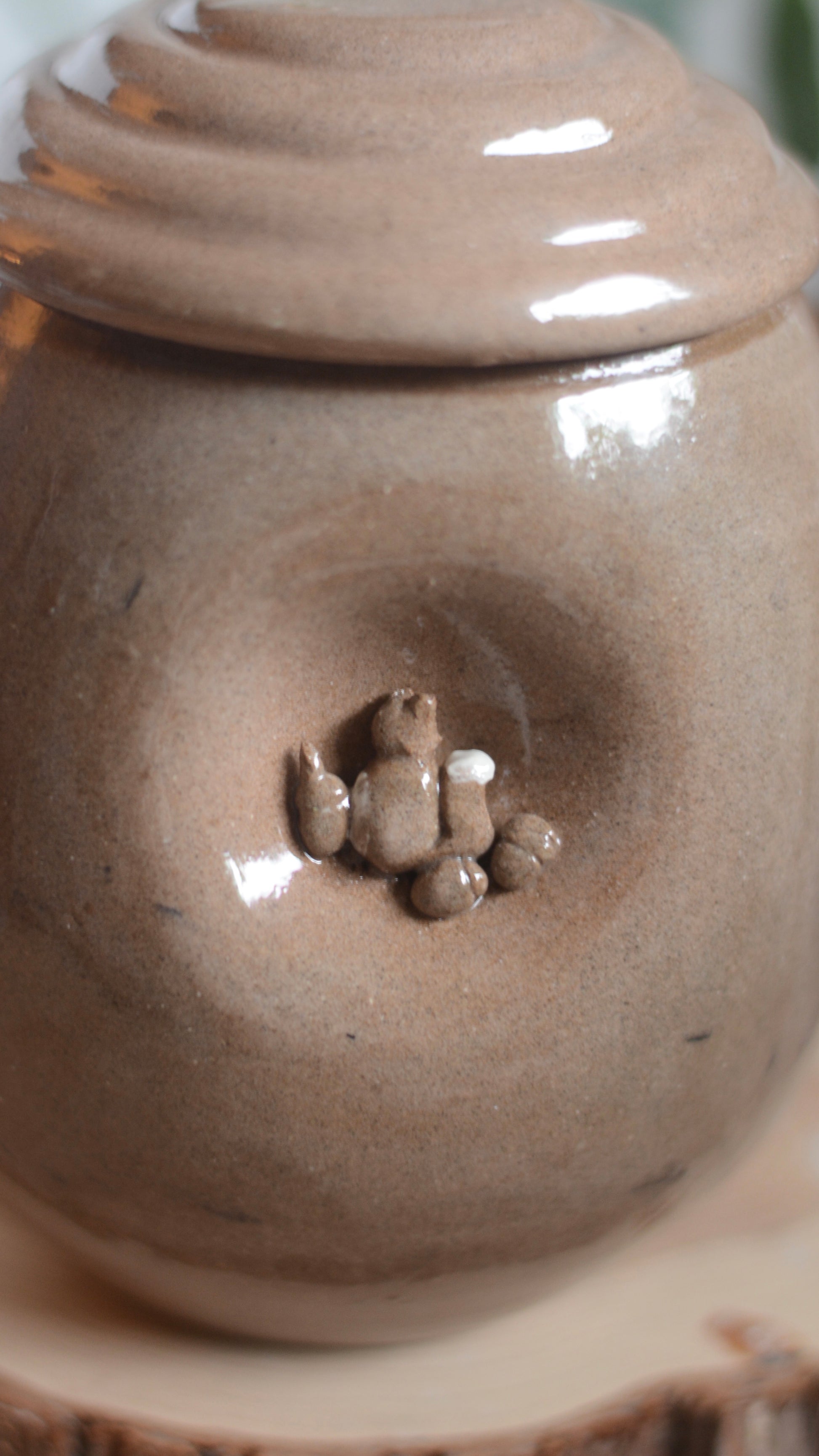 Pièce crée pendant le challenge "claytober". Pièce unique en grès rouge façonnée et décorée à la main puis émaillée en transparent.