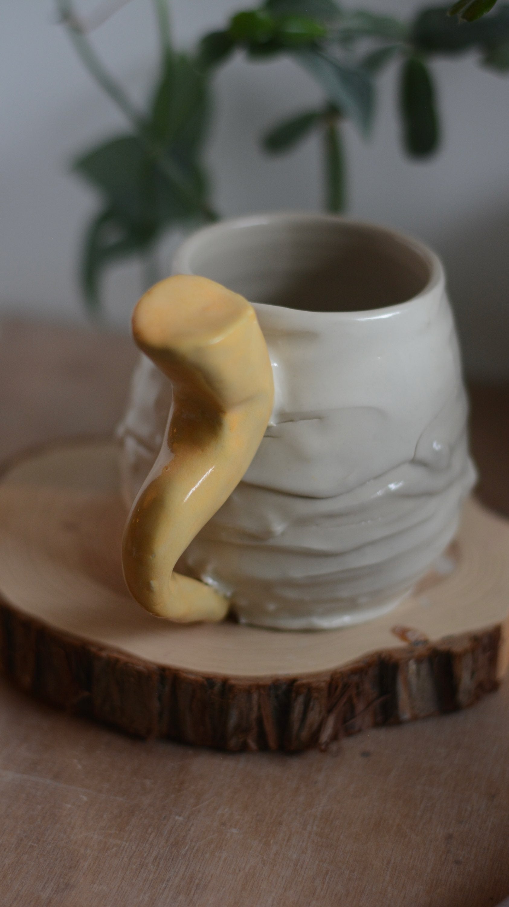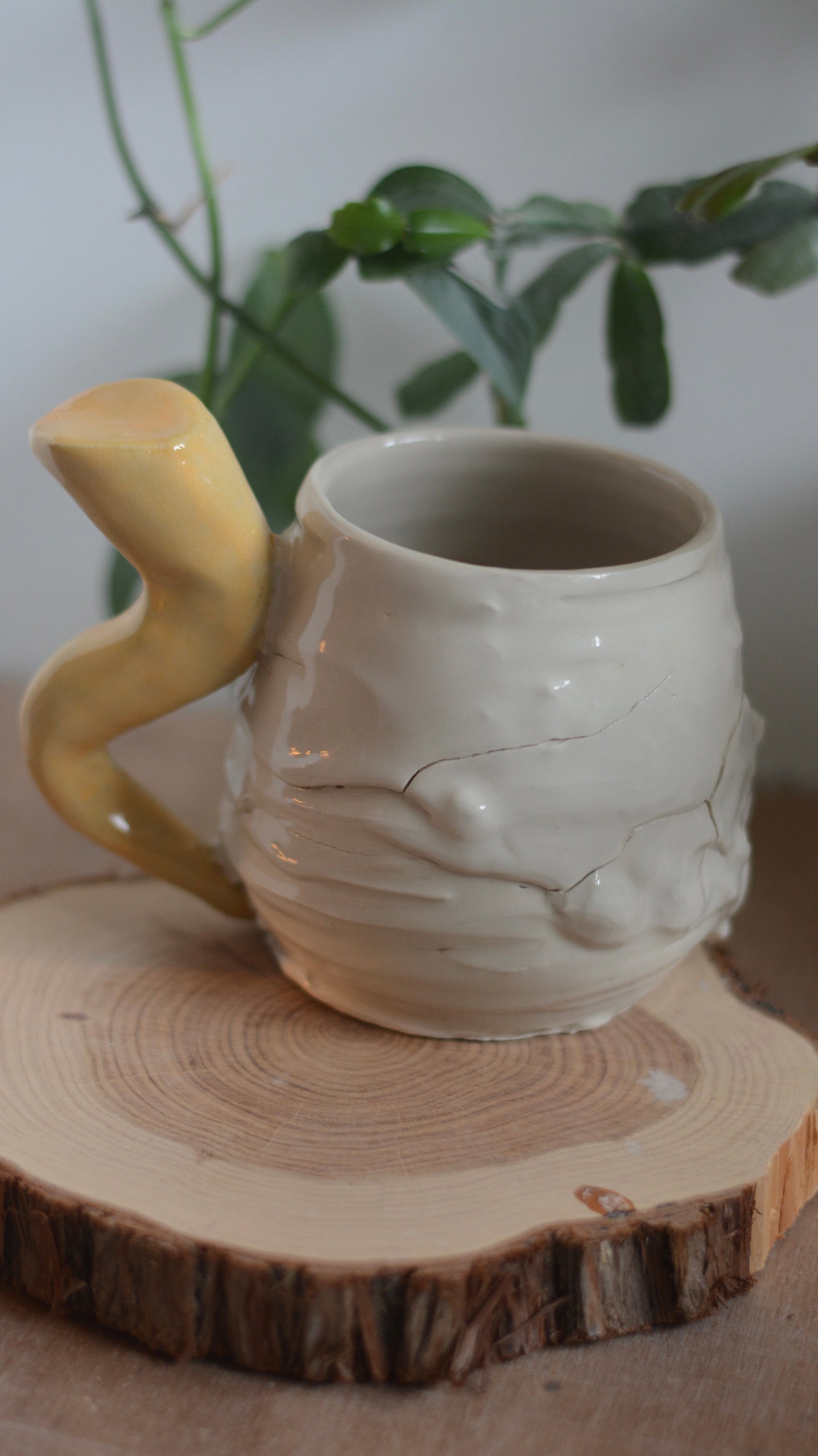 Pièce crée pendant le challenge "claytober". Pièce unique en grès blanc façonnée et décorée à la main puis émaillée en transparent.