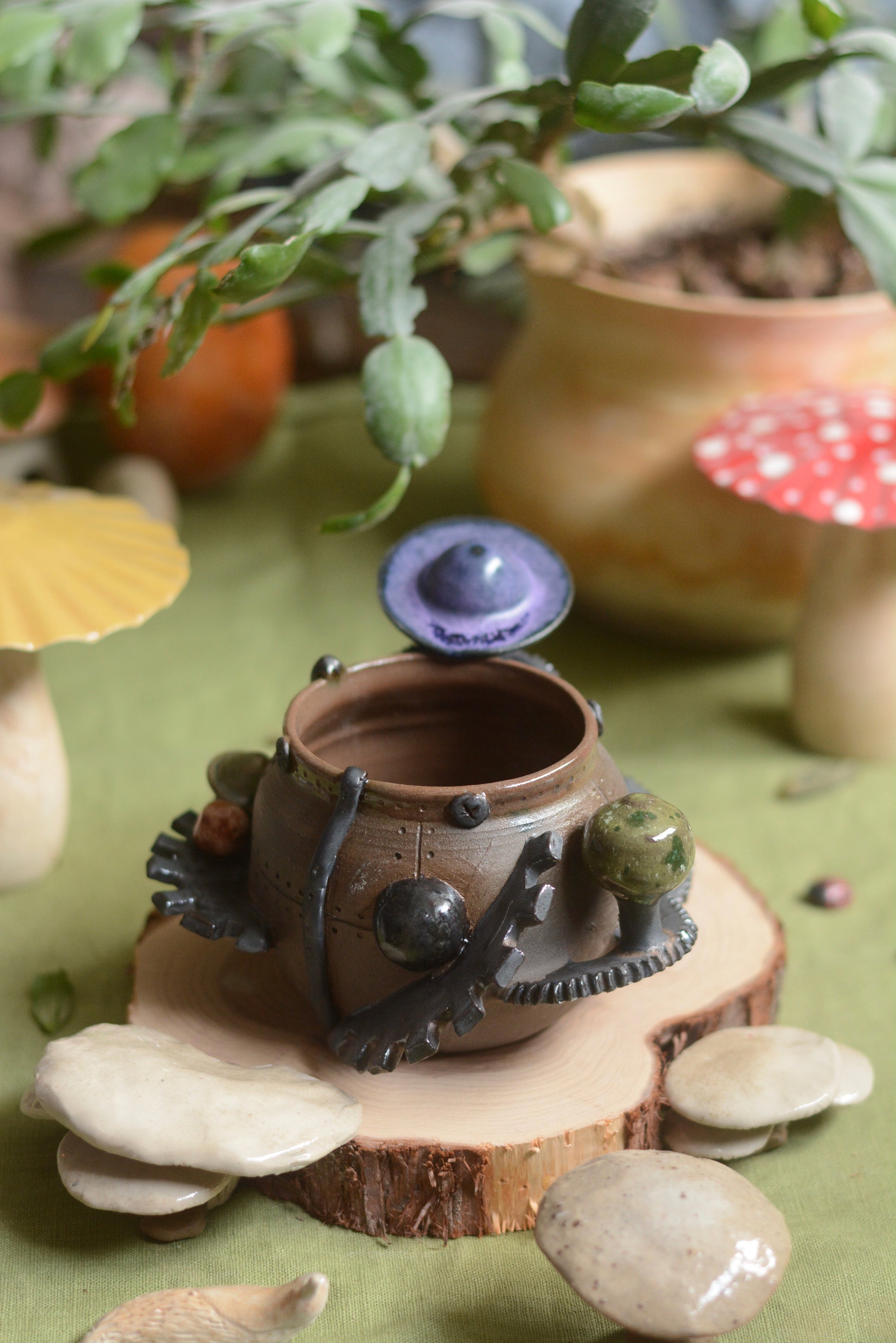 Pièce en grès anthracite tournée et décorée à la main puis émaillée en transparent brillant.