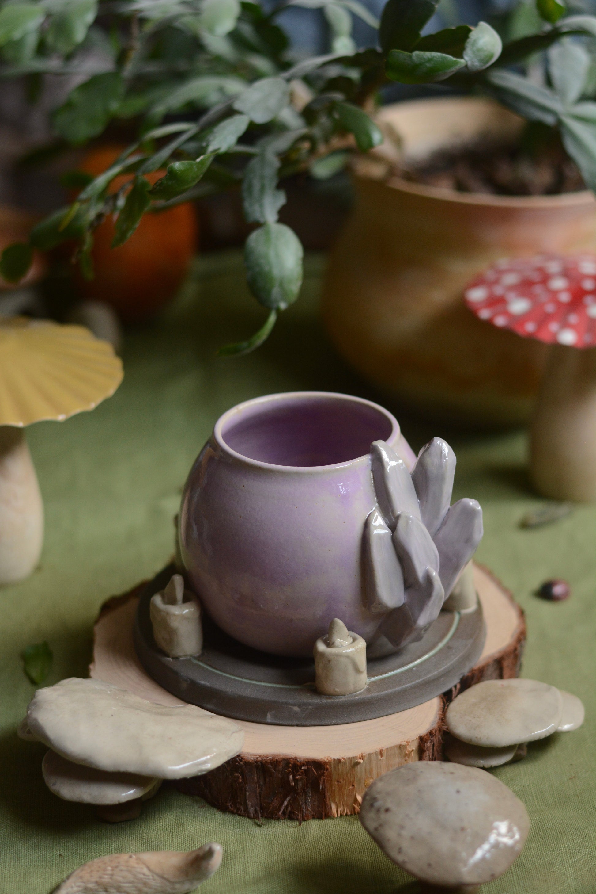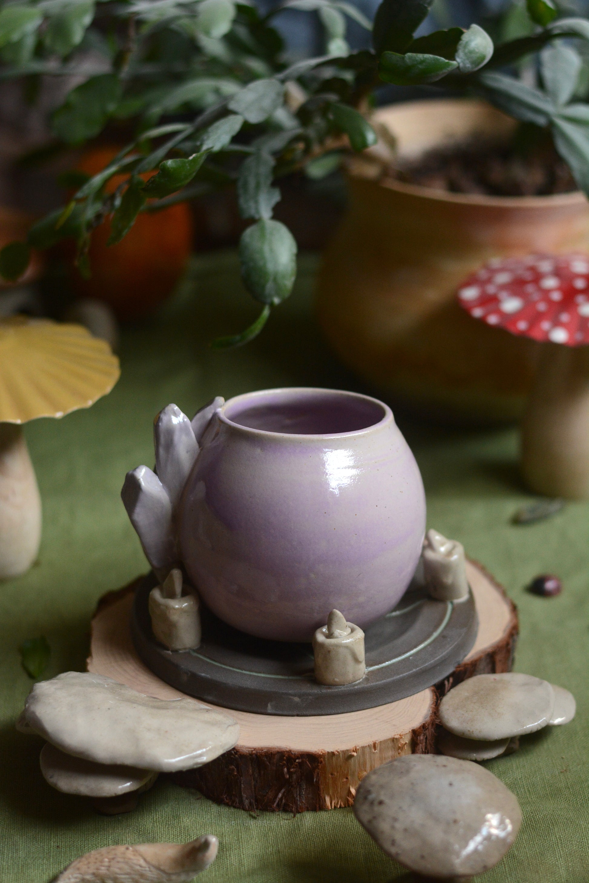 Pièce en grès blanc tournée et décorée à la main puis émaillée en transparent brillant.