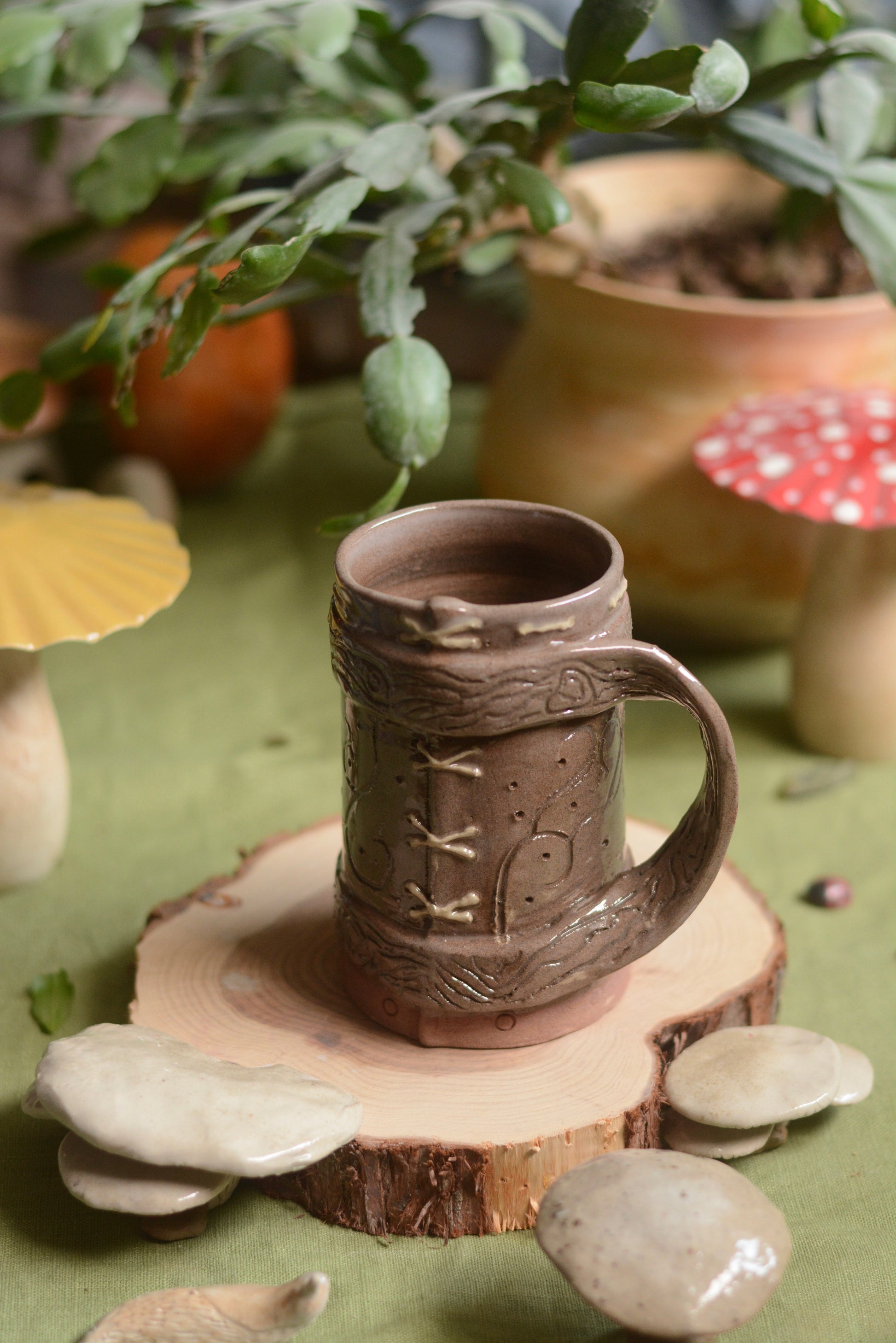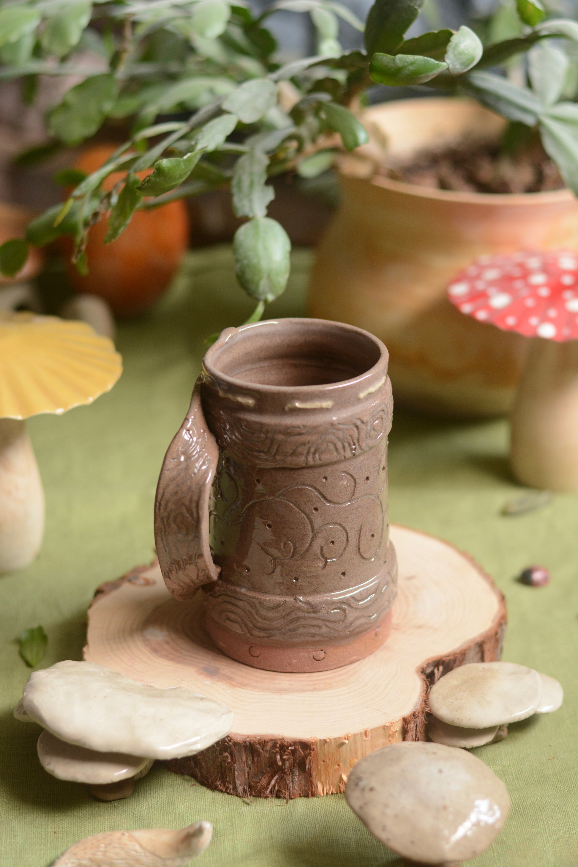 Pièce en grès roux tournée et décorée à la main puis émaillée en transparent brillant.
