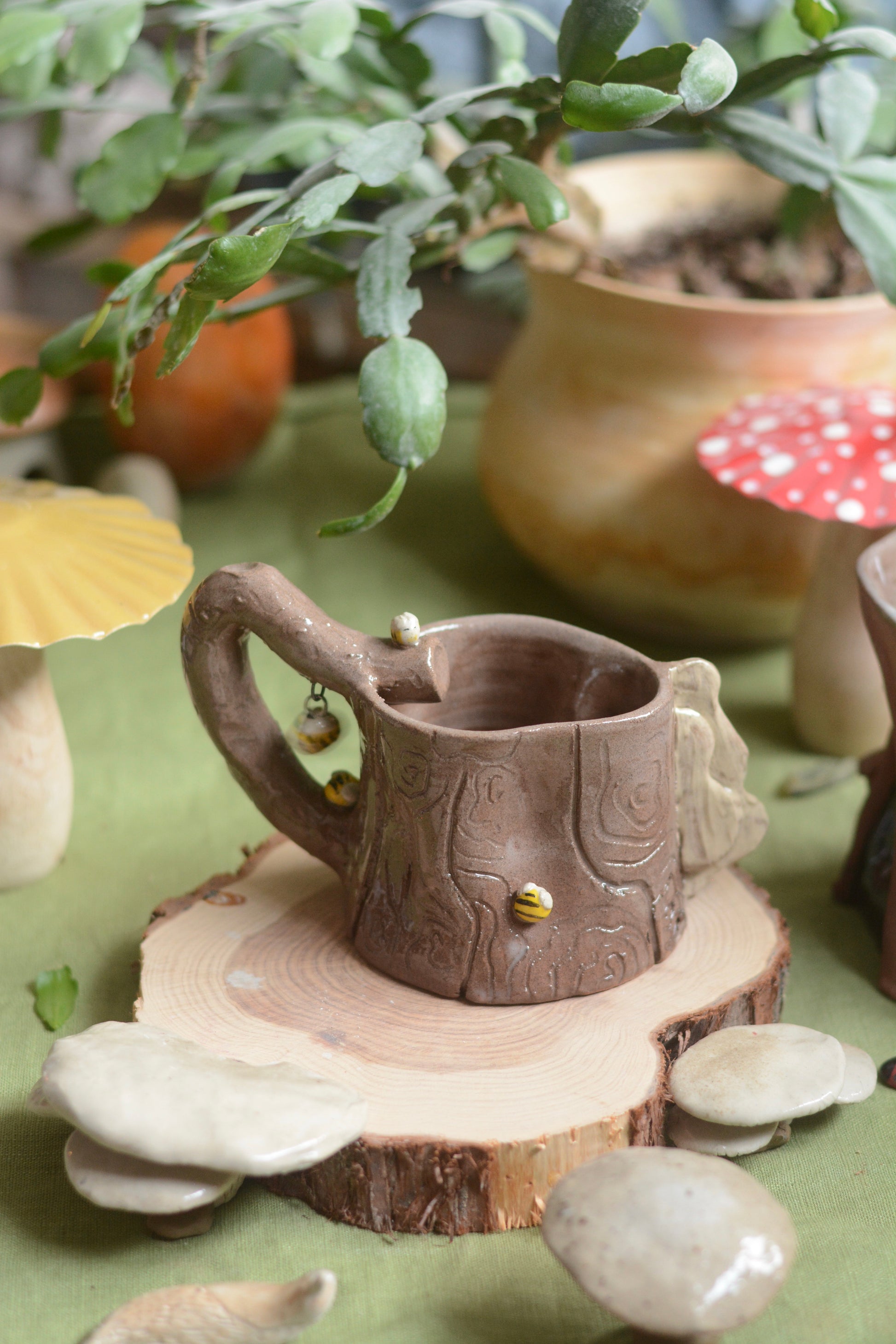 Pièce en grès roux tournée et décorée à la main puis émaillée en transparent brillant.