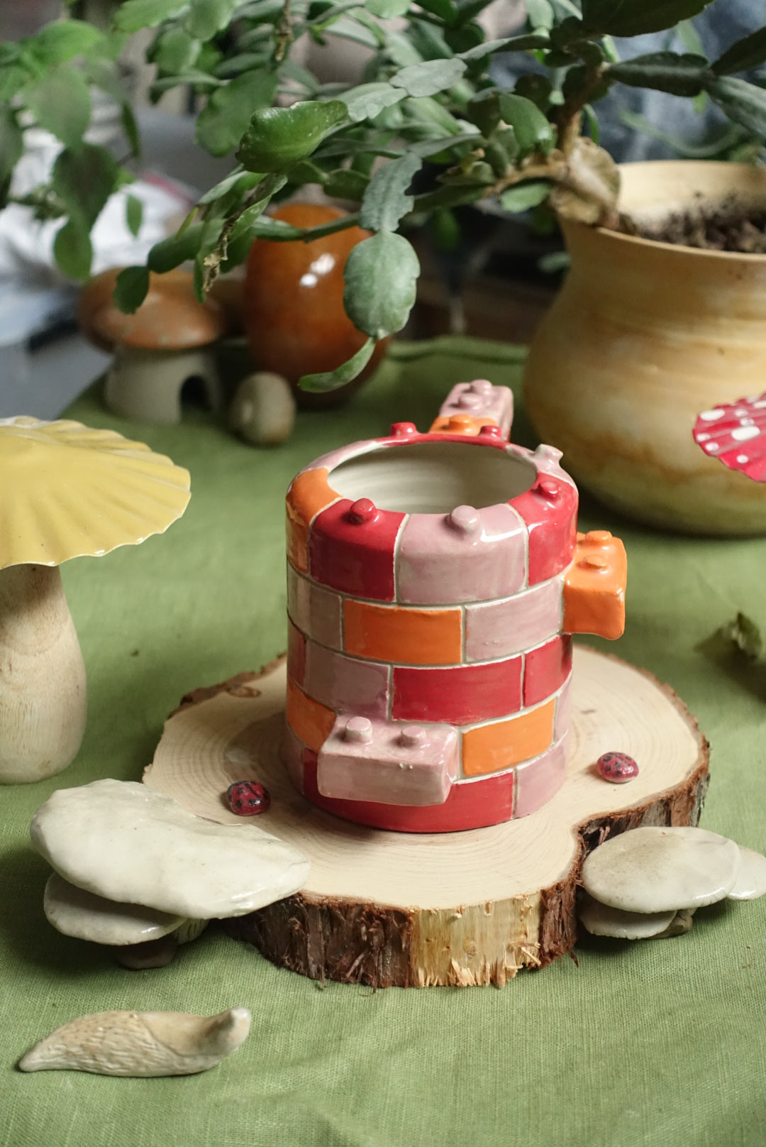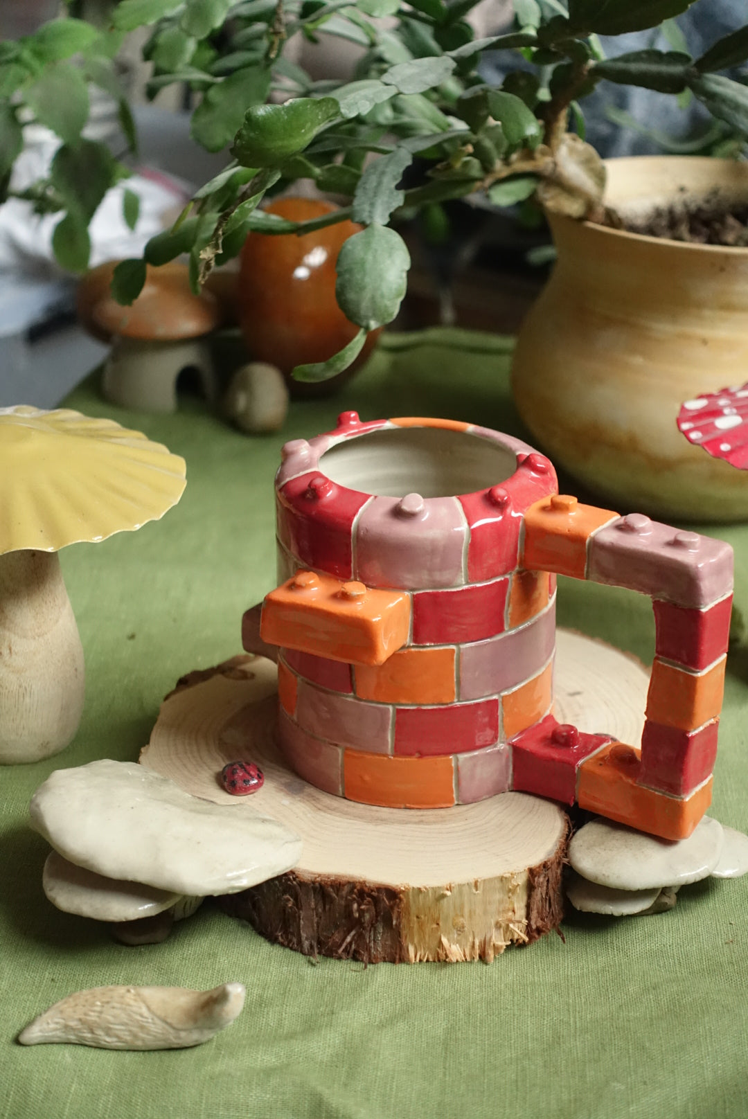 Pièce en grès blanc tournée et décorée à la main puis émaillée en transparent brillant.
